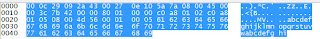 hexadecimales que representan el binario real) del paquete seleccionado en el